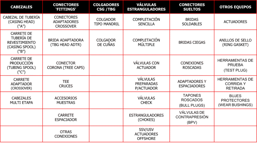 - Compatibilidad con otros componentes de cabezales y árboles de producción
